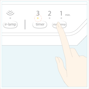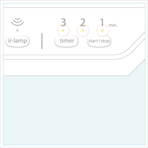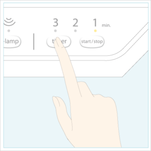 ※「timer」スイッチを押すたびに、min. ランプが1min.→2min.→3min.→1min. の順で点灯し、設定時間が繰り返され ます。