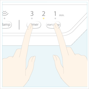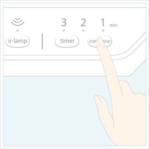 ※「timer」スイッチを押すたびに、min.ランプが2min.→3min.→全点灯→1min.→2min.の順で繰り返されます。