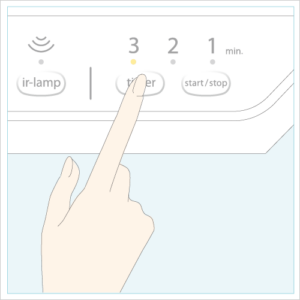 「timer」スイッチを押して使用時間をセットします。